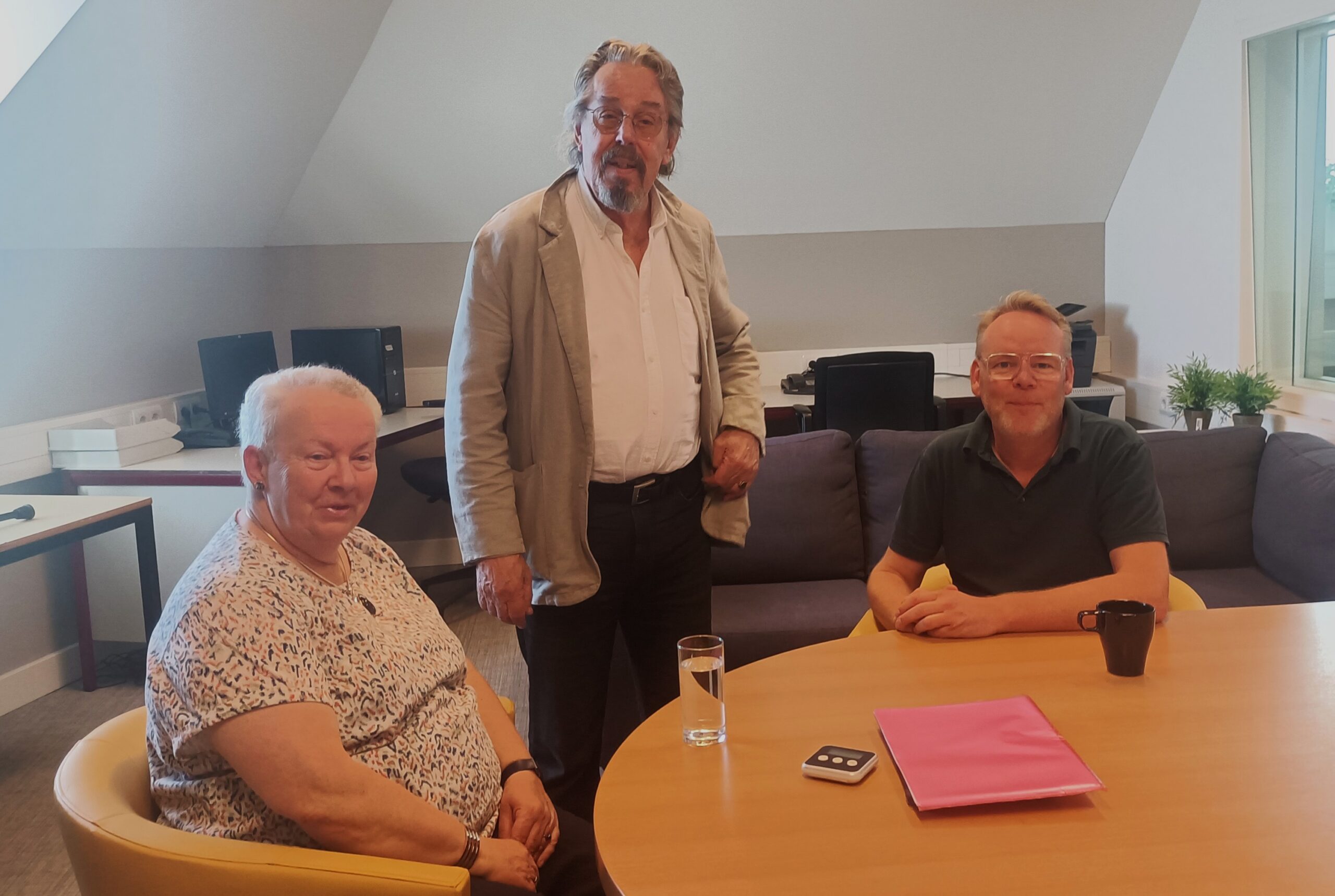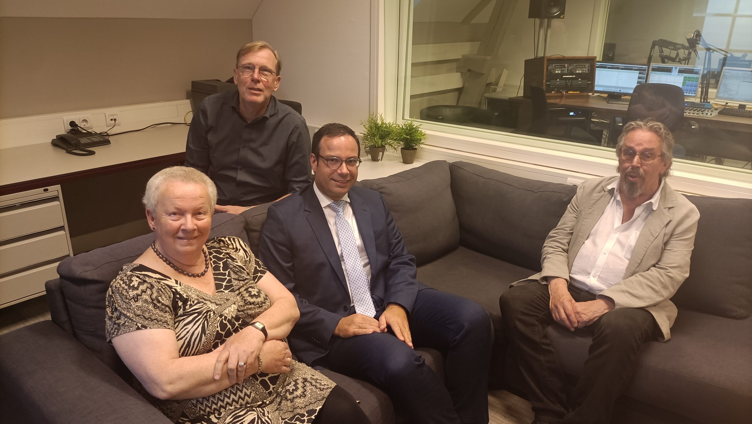 Jonn van Zuthem en Annie van ’t Zand in gesprek met twee fractievoorzitters: Henk Selles van het Christen-Democratisch Appèl (CDA) Kampen en Lammert Bastiaan van Kampen Sociaal.